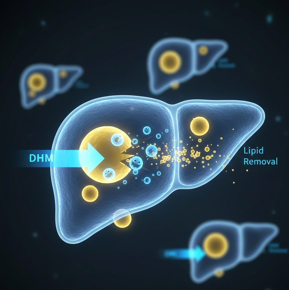 Wątroba jest centralnym laboratorium metabolicznym. DHM wykazuje zdolność do redukcji akumulacji trójglicerydów w hepatocytach poprzez aktywację szlaku AMPK. Oznacza to, że wspiera ona organizm w efektywniejszym zarządzaniu zapasami tłuszczu, jednocześnie chroniąc komórki wątroby przed stresem oksydacyjnym indukowanym przez dietę lub czynniki środowiskowe.