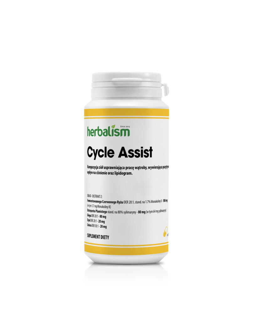 Cycle Assist to precyzyjnie zaprojektowana synergia pięciu ekstraktów, które działają na zasadzie tarczy ochronnej. Mianowicie, zamiast skupiać się na jednym aspekcie, produkt wspiera jednocześnie filtrację wątrobową, elastyczność naczyń krwionośnych oraz gospodarkę lipidową.
